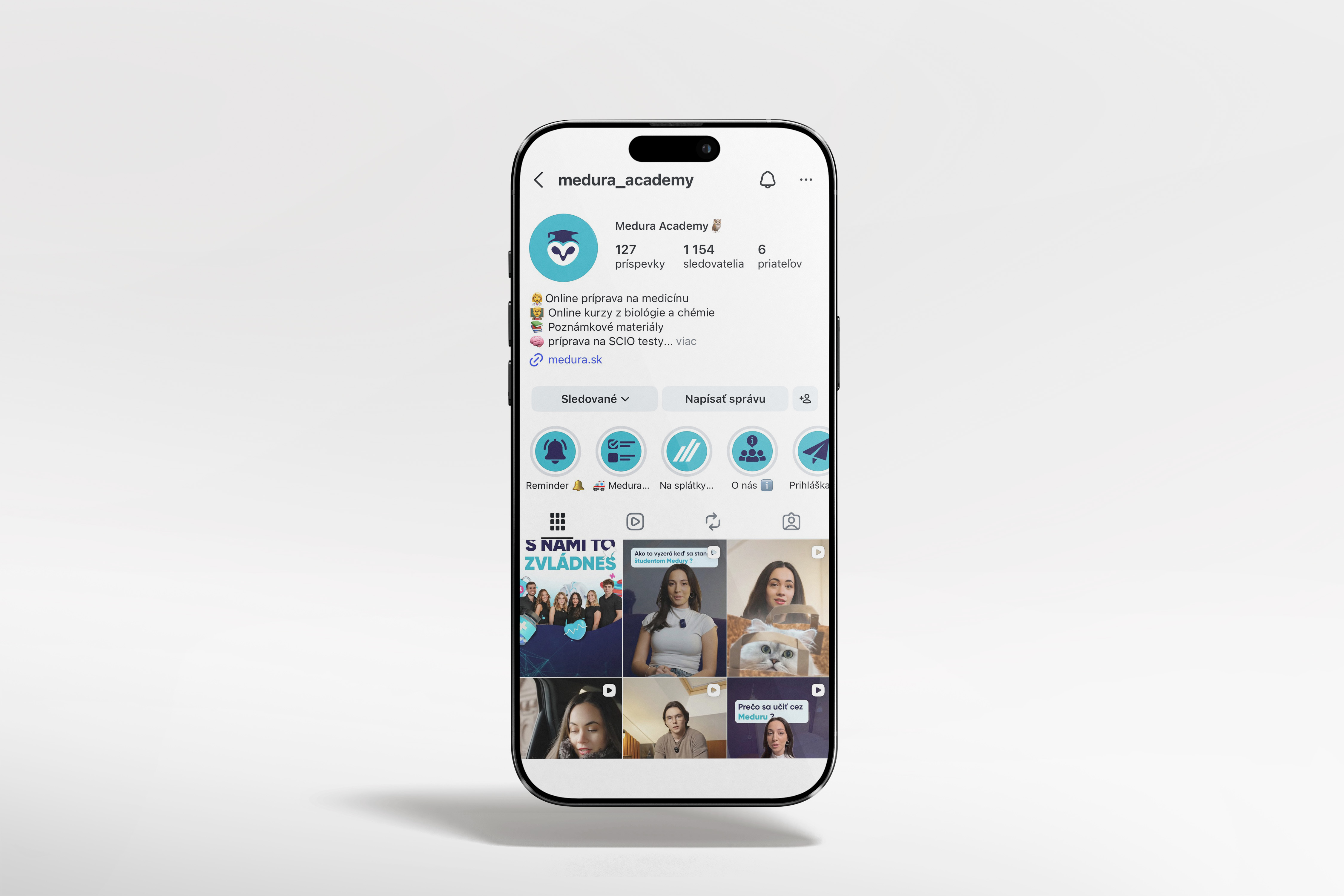Pre Medura Academy sme realizovali komplexný digitálny projekt, ktorý zahŕňal vývoj profesionálneho webu, tvorbu kompletného online kurzu a pravidelnú produkciu video obsahu. Súčasťou spolupráce sú aj reklamné kampane na Meta Ads a Google Ads, vďaka ktorým si kurz zakúpilo 50+ študentov. Od nuly sme vybudovali Instagram profil, ktorý dnes aktívne sleduje viac ako 1 100 sledovateľov — a čísla stále rastú.